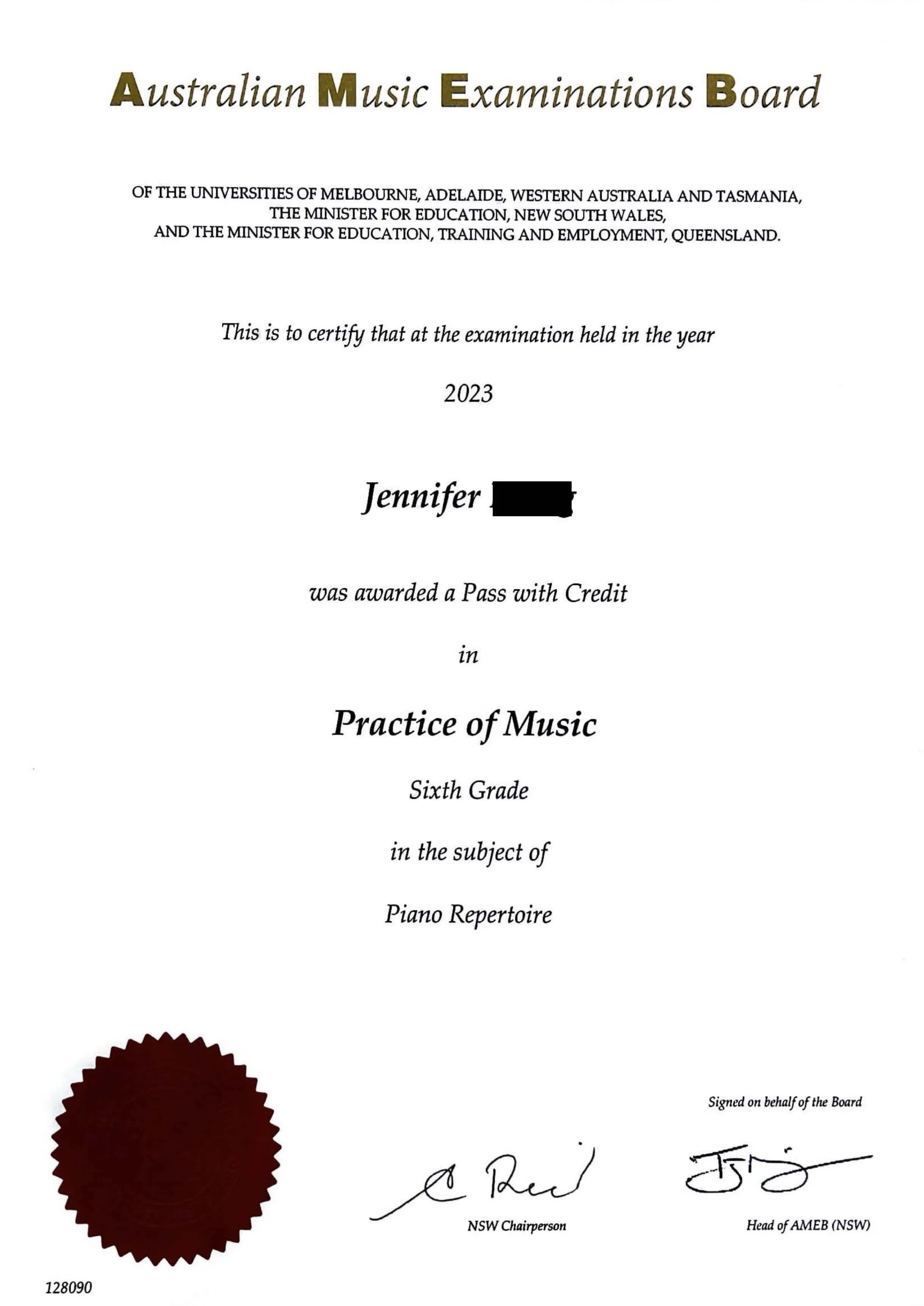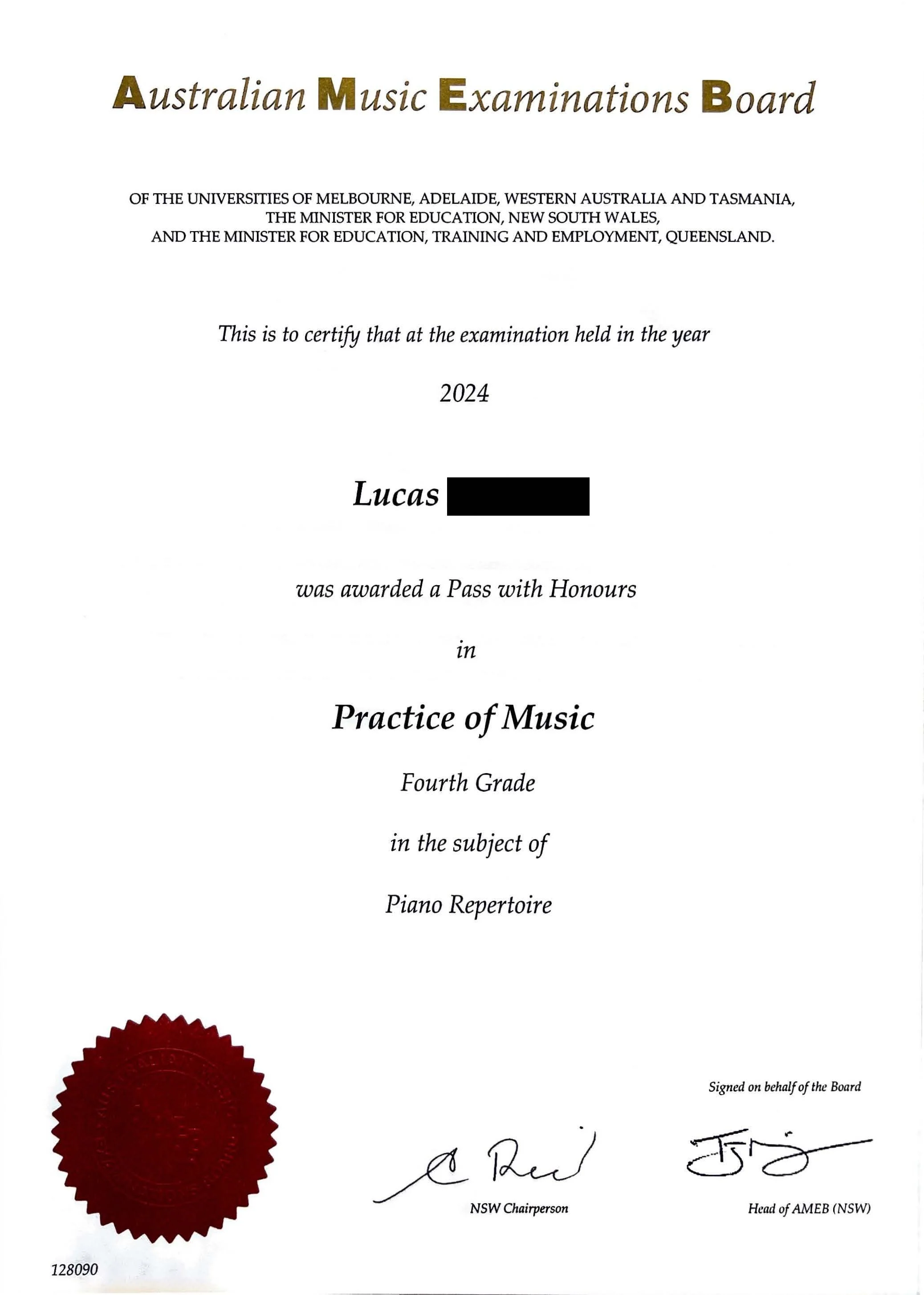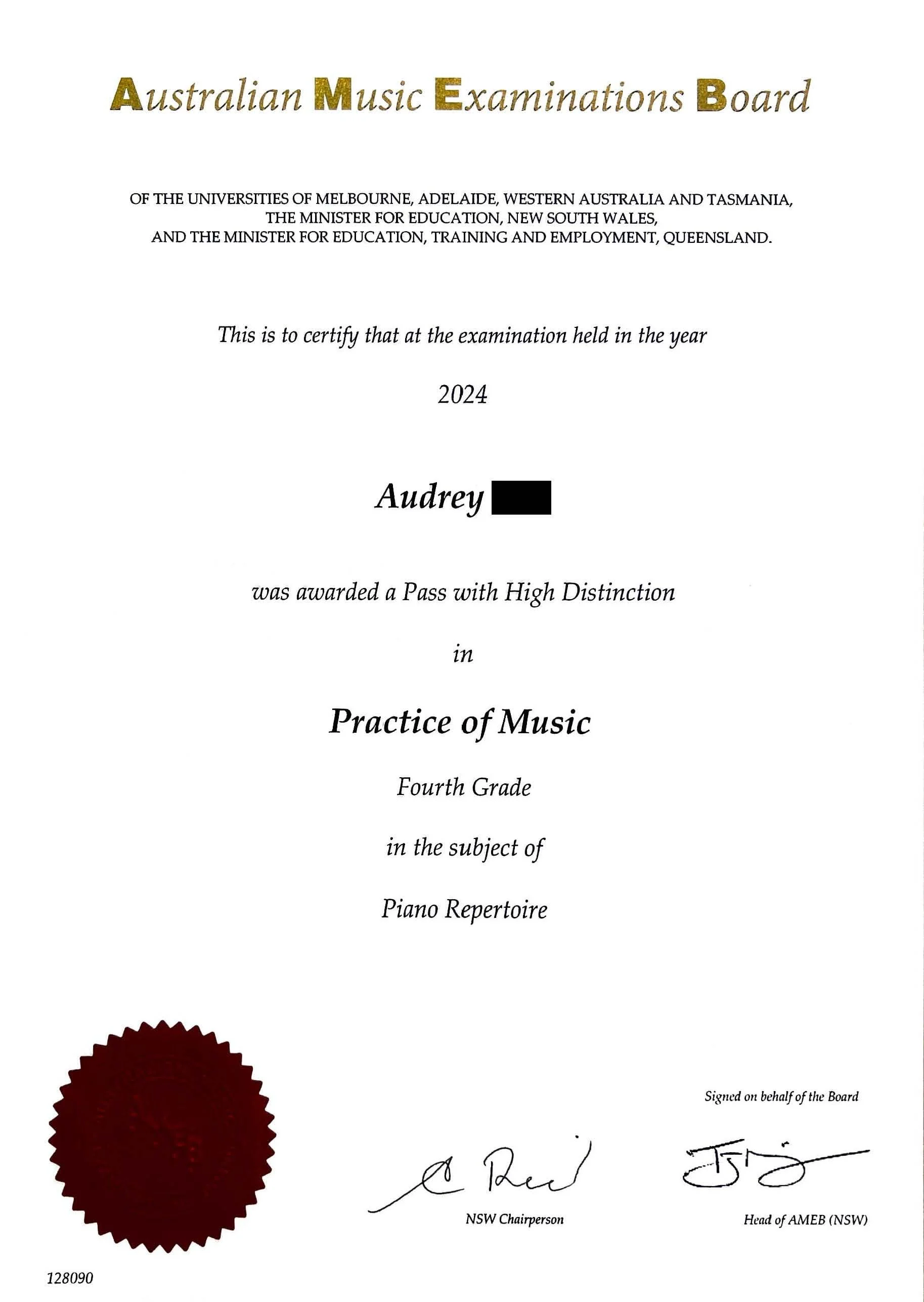 Achieved A+ for AMEB Grade 2 Exam 2025